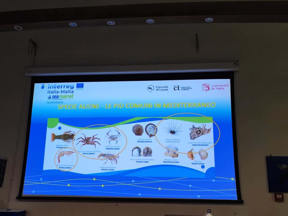 Nella prima parte dell’incontro sono state elencate le specie marine aliene più comuni nel mar Mediterraneo attraverso una presentazione, comprensiva di illustrazioni e fotografie, mostrando inoltre le principali vie di ingresso di queste nelle nostre acque e alcune importanti caratteristiche biologiche. I pescatori, che si sono rivelati interessati all’argomento, hanno affermato che alcune specie dell’elenco sono oggetto di cattura da parte della piccola pesca lampedusana.