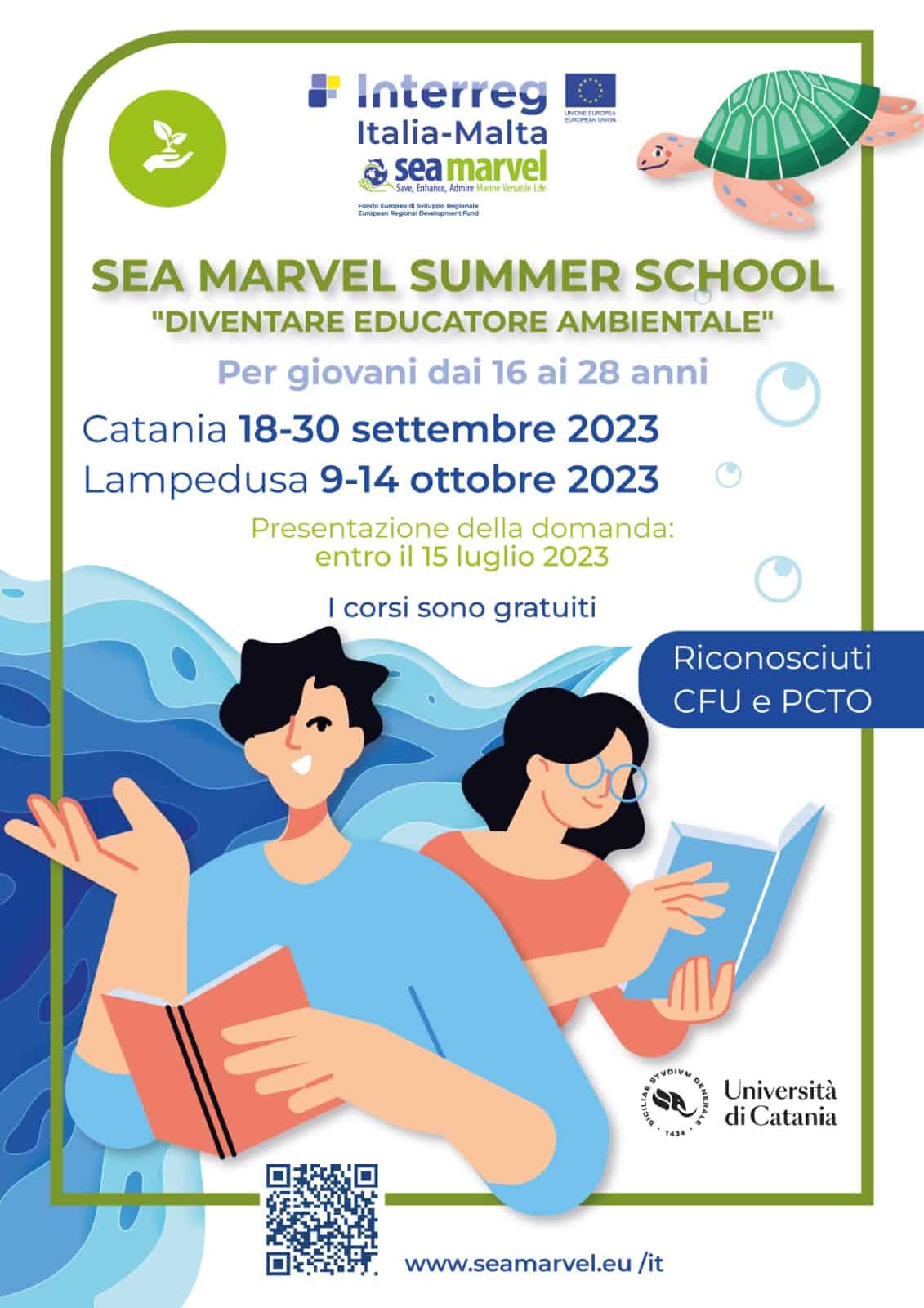 Un’opportunità offerta nell’ambito del progetto SEA Marvel – Save, Enhance, Admire Marine Versatile Life, finanziato  dal Fondo Europeo di Sviluppo Regionale – INTERREG Italia – Malta – Asse Prioritario 3, che l’Università di Catania sta sviluppando  per aumentare e diffondere la consapevolezza dei rischi dell’ecosistema marino, contribuire a mitigare gli effetti dell’inquinamento da plastiche, il sovrasfruttamento delle risorse marine, l’invasione delle specie aliene e gli effetti dei cambiamenti climatici in maniera da mantenere e riattivare l’ecosistema marino ed i siti protetti di Natura 2000.