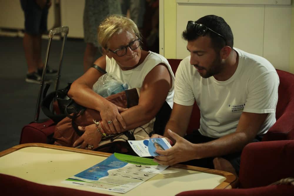 Il 24 luglio, nel viaggio di ritorno verso Porto Empedocle, a bordo della nave Galaxy, l’attenzione si è concentrata sui numerosi passeggeri che hanno manifestato un forte interesse nell’apprendere e partecipare alle attività delle Sentinelle del Mare proposte dal progetto SEA MARVEL. Gli esperti hanno diffuso informazioni sulle iniziative progettuali, sull’importanza dell’ecosistema marino e dell’attiva partecipazione dei passeggeri nelle segnalazioni future. Argomenti come il consumo responsabile delle specie ittiche e la gestione dei rifiuti nel Mediterraneo hanno generato dibattiti coinvolgenti.